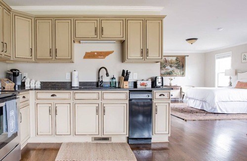 We offer Southern hospitality at its best! With over 1,000 square feet of comfortable furnishings, antiques & artwork, this charming farmhouse-inspired home creates a restful, recuperative atmosphere. Enjoy farm fresh eggs while sipping complimentary coffee. Relax on a summer night with hundreds of fireflies. We offer complimentary passes for 3 guests to visit the Carnton Plantation, Carter House and Rippa Villa and have a backyard homestead with hens you can feed grass or herbs from our garden.