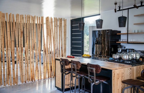 At guests' disposal, there are the espresso machine, toast, kettle, and large fridge. In the center, you can enjoy the central island, which is an ideal cooking area, with a gas stove, oven (electric?) And seats in which to enjoy breakfasts and lunches.