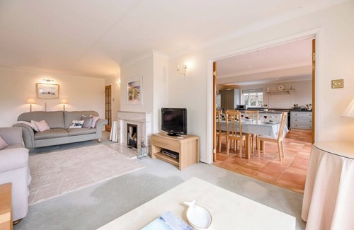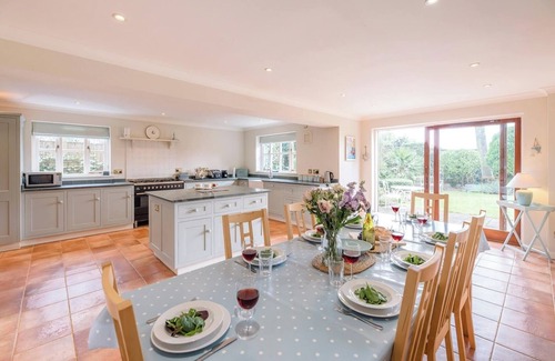 The fully equipped kitchen has an American style full height free standing fridge / freezer, integrated dishwasher, Britannia range cooker with 6 ring gas hob, Nespresso coffee machine, microwave, kettle, and toaster. There is a table and 8 chairs (with an additional 2 folding chairs in the hall cupboard, if required). The utility room is conveniently next to the kitchen, equipped with a washing machine and sink - perfect for dumping beach gear in!. Door out to the side of the house.