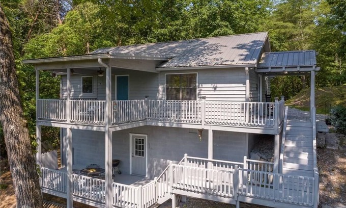 The Galaxy Getaway is a 2 bedroom 2 bath cabin located on the mountain side in Talking Rock Creek Resort. With a full kitchen plus a washer and dryer! At only 1 hour from Blue Ridge, The Galaxy Getaway at Talking Rock Creek Resort sits on 1.5 acres with mountain views all year long. Talking Rock Creek Resort (TRCR) is a 5500 acre rural community in the North Georgia mountains. The amenities include 2 pools, a basketball court, tennis court, exercise center, kids' playground, clubhouse, stocked trout pond (fishing & kayaking allowed), Carter’s Lake access, beach access/riverfront access for fly fishing, and a walking trail.