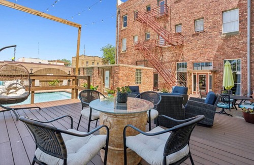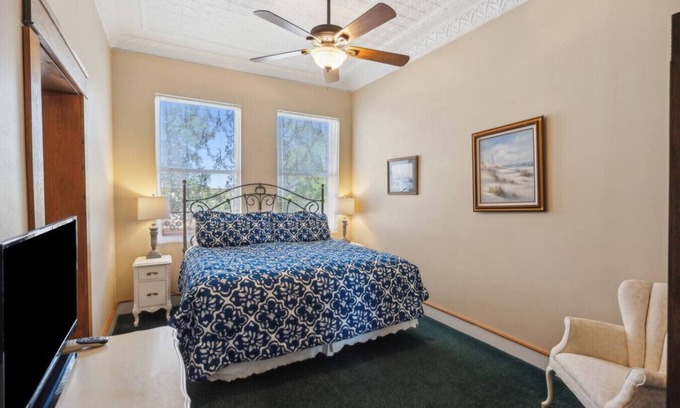 The Galveston Room lies in the heart of downtown Eastland next to the Majestic Theater in The Eastland Historic Hotel. You will find it meticulously clean and inviting. The hotel features a beautiful coffee shop, a swimming pool, and a large patio and deck. All reservations include access to our self-serve breakfast area. It is open at all times with snacks, drinks, pastries, breakfast sandwiches, and much more. At our privately owned hotel, your highest satisfaction is our top priority!