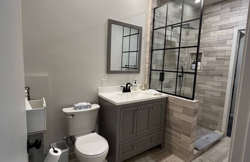 The apartment is a spacious 675 sq. feet. There is a Casper king size bed in the bedroom, and a queen sofa bed in the living area. This indoor/outdoor living space is comfy cozy.