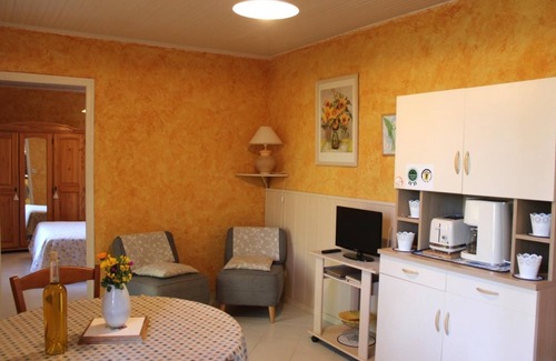 Gîte on the ground floor of the owners' house : Entrance to living room, kitchen area 1 Bedroom with 1 double bed (140x190). Shower room and WC. Terrace opening onto 1000 m² of pleasure garden and land. Carport. Non-smoking gîte. Easy access to Nice by public transport (bus no. 89/tram). Electric heating. Charges extra (0.15 E/KWH additional meter reading). Tourist tax extra. Sheet rental and cleaning on request package. Charly and Charlotte will welcome you to a place full of charm. The Gîte is part of a large family home. It is nestled in the heart of a floral garden, lovingly tended by Charly, a haven of peace ideal for contemplation, reading or relaxing. There is a calm and gentle atmosphere where we like to share moments of conviviality with our guests.