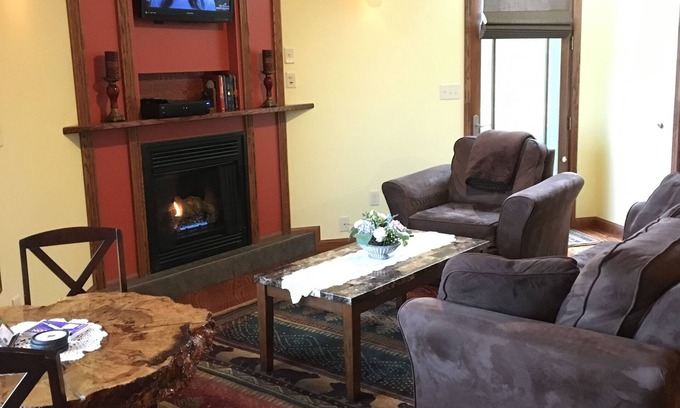 Luxurious and unique one bedroom suite (queen bed) on Rainy Lake with full well appointed kitchen, double Murphy bed in living room, fireplace, bathroom including bidet, balcony overlooking the Bear Ridge garden, and beautiful view of Rainy Lake. Includes central air, wireless internet, two flat panel tvs, many streaming channels and satellite tv, on-site complimentary laundry facilities, and barbecue center. Includes dock space. Within walking distance of licensed dining rooms.
