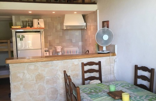 Located 40 minutes from Ajaccio airport, pleasant waterfront apartment (40m2) with garden / terrace (35m2) with direct access to Sagone beach with no road to cross (the sea is 30m away). The shops are located in the main street of Sagone and 5 minutes walk (supermarket, petrol, pharmacy, bank, press) Composed of a living room with sofa bed, terrace, American kitchen, a mezzanine, an alcove with beds bunk, shower room / WC.