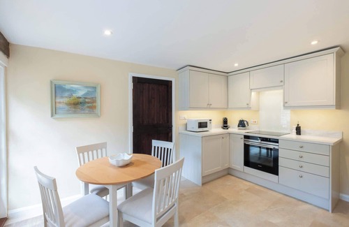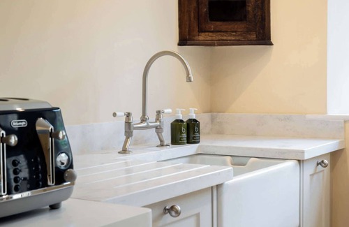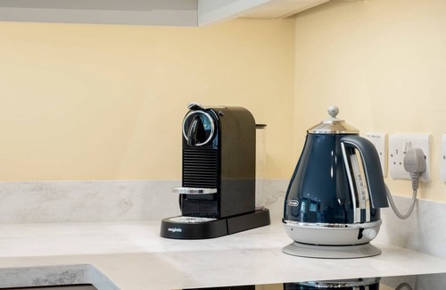 At the far end of the home, a bright kitchen-diner with garden views and space to gather provides a welcoming setting for shared meals and quiet moments alike. Fully equipped for your stay — including a Nespresso coffee machine for slow mornings — the kitchen blends style with functionality. Whether you're preparing breakfast before a day of exploring or enjoying wine and conversation into the evening, this space invites connection and ease.