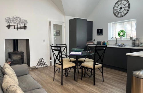 Our dog friendly modern three bedroom bungalow is situated in a rural village location. Three bedrooms, one with an en-suite and one shared bathroom. Open plan kitchen/Diner/living space with sliding doors onto patio garden with seating and fire pit. The fully equipped kitchen has oven, hob, dishwasher, microwave, fridge and washing machine. Off road parking for one car plus on road. Half way between Birmingham and East Midlands airport with good links to the M42.