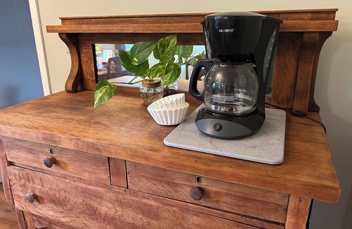+Stocked kitchen with coffee maker, cookware, and dishwasher pods provided