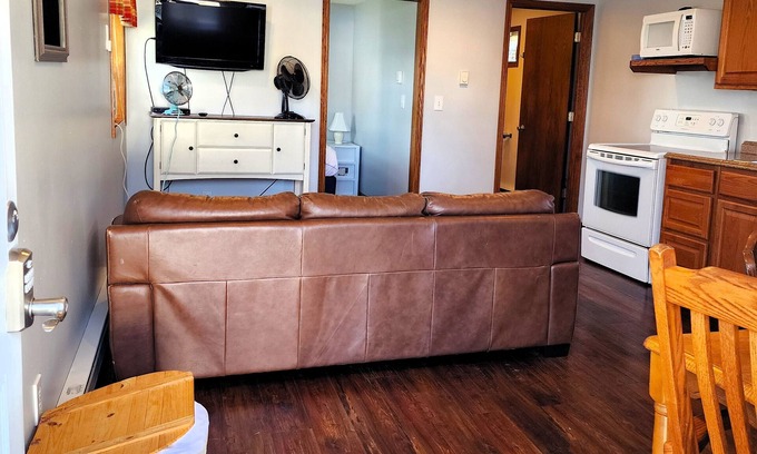 One of five cottages that are part of Randall Lake Cottages. The cottages sit on the shores of Randall Lake, one of seven all sports lakes in Coldwater's northern chain of lakes. The Getaway is our cozy one-bedroom cottage. The maximum occupancy is 2 adults, 2 children. You get all the perks at a fraction of the cost. The cottage has one full bed and one sofa bed. You will have your own patio, grill, and fire pit, where you can sip your morning coffee, enjoy a lakeside barbecue, or wind down the night admiring the stars.