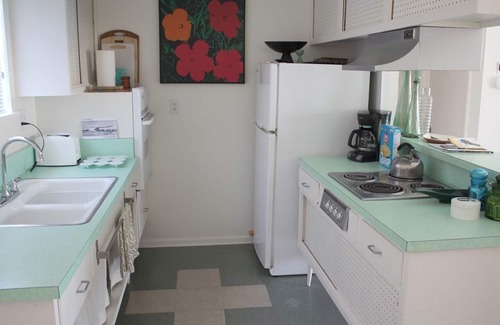 Large Mid-Century 1BR (aprx 700 sq ft) in quiet building located in the Spa Zone of Desert Hot Springs, CA. 1 Bedroom (queen size bed), 1 bath, living room, dining area and kitchen. Off-street parking available. Same day reservations are welcome, please contact the The Getaway for details.