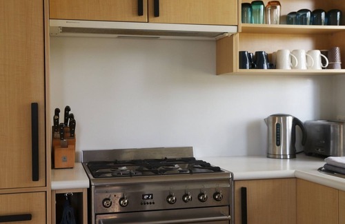 Kitchen well stocked with appliances and utensils for cooking and entertaining.