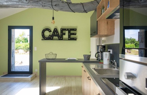 Gîtes of character, "Oda Verte" and "Oda Bleue" are arranged for you to spend a quiet and relaxing holiday with friends or family. These are 2 houses of 100 m² that can accommodate up to 8 -10 people each, built by an architect in a Vendée barn. The rustic character of this building has been saved by the latter: exposed timbers, coated stone walls. This set is ideal for groups of up to 18 people by booking the 2 cottages.
