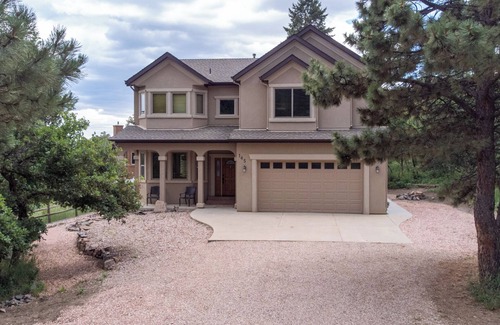 Prepare to fall in love with this place from the moment you drive in to this valley hidden away in Palmer Lake. Pull up to this beautiful 4 bedroom home with amazing views of red stone cliffs in a safe, tucked-away little community, near the Palmer Lake reservoirs trailhead. You'll find a warm, comfortable home perfect to unwind in during your family vacation. By the time you unpack in the spacious master suite with King bed and gorgeous bathroom, you might find your family already enjoying the spacious hot tub out back.