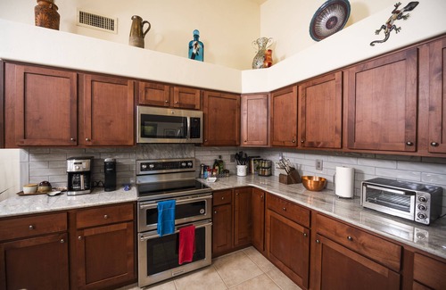 The Golfing Gecko, Quiet Enjoyment of the Sonoran Desert and Amazing Sunsets is located in Casas Adobes. The Golfing Gecko, Quiet Enjoyment of the Sonoran Desert and Amazing Sunsets provides accommodation, featuring Hot Tub, Kitchen, Laundry, among other amenities. This House features Hot Tub, Kitchen, Laundry, to make your stay a comfortable one.