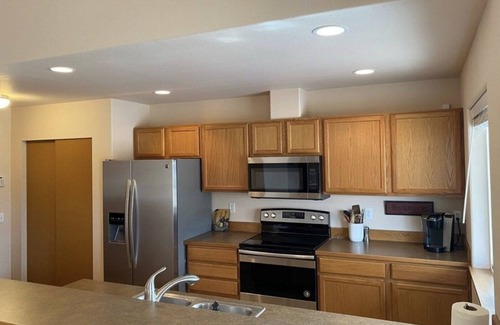 Come stay awhile in The Good Life to play, relax, and enjoy all the activities of Desert Aire and nearby attractions. Spacious rooms with comfy beds, open kitchen concept and plenty of room for your family and friends. Relax on the back patio and watch the planes come and go, while taking in those mountain views.