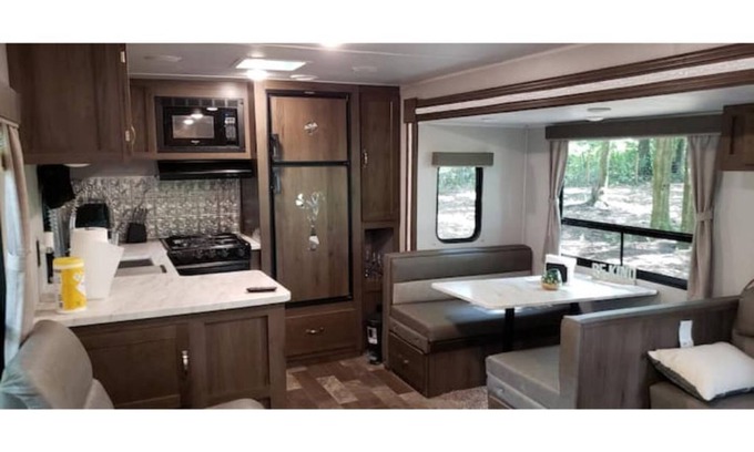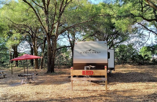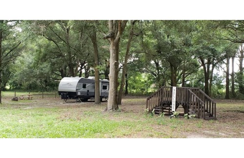 Enjoy the lovely setting of this romantic spot in our mini-farm. Our E to W RV is close to the city, the beaches, Orlando, Tampa, Ocala, Ocala National Forest, Lady Lake, The Villages, Lake Weir. This is the right spot to enjoy Central Florida . Cell signal available as well as wifi, security gate, security cameras, other features: gas station, dollar general store, post office, Eaton's Beach and Grand Oaks all within 5 min drive. We are located in Weirsdale, FL border with Lady Lake, FL