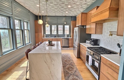 Discover this 11-bedroom historic mansion in Wauwatosa. This gorgeous house boasts 2 king beds and 14 queen beds, perfect for large groups or families. With 5 bathrooms equipped with showers, soak in tubs, and hair dryers, guests will feel pampered during their stay. The tranquil surroundings and terrific amenities like WiFi, AC, and a washing machine ensure a comfortable and relaxing experience. Enjoy your time in Wauwatosa at our house.