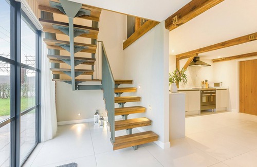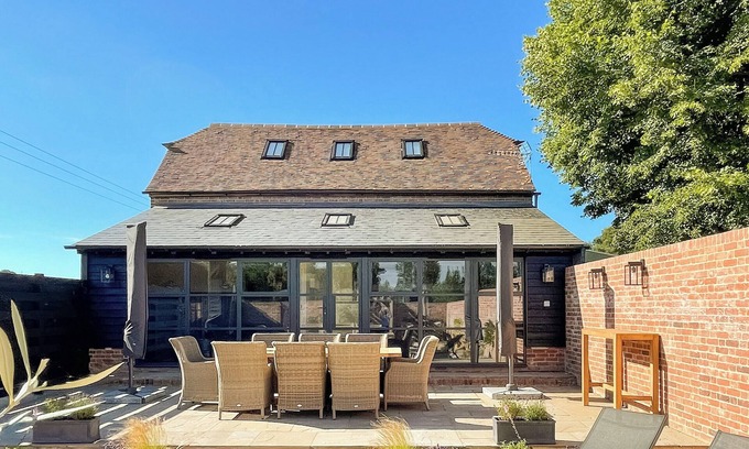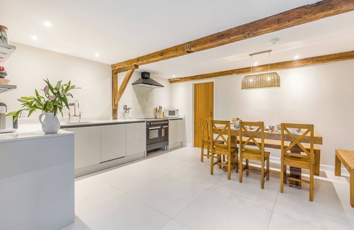 Bedroom 3: Kingsize (5ft) Bed, Slipper Bath (In Room) Ensuite: Toilet. Air source heat pump and underfloor heating, electricity, bed linen, towels and Wi-Fi included. Welcome pack. Back garden with sitting out area, outdoor furniture and barbecue. Courtyard with sitting out area (shared with other properties on-site). Private parking for 2 cars. No smoking. . The Granary has been converted beautifully to offer a charming space for the whole family. Set on the edge of a working arable farm, there is access via footpaths to the stunning surrounding countryside, perfect for walkers or just those wishing to explore. Offering three en-suite bedrooms including a freestanding bath in the master suite, and a large table with plentiful seating in the kitchen, this is the perfect place for everyone to relax and unwind. A cosy first floor living room with large corner sofa and separate reading area makes the most of the far reaching countryside views over the farm, a vineyard and orchards beyond.
