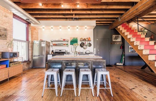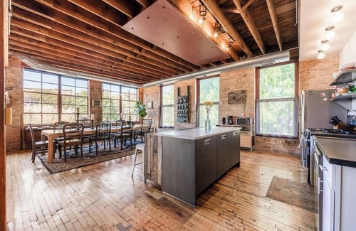 Welcome to The Grand Kimball Lodge, a truly unique getaway featured in Architectural Digest's "21 Best Chicago Airbnbs for Your Next Windy City Trip." Located in the heart of Logan Square, this charming loft combines rustic elegance with modern comforts. With 4 themed bedrooms, 3 bathrooms, a chef’s kitchen, & spacious living & dining areas, it’s the perfect space for families, friends, & small groups to gather & make lasting memories. Visit my owner’s profile page for a 20-person listing too.