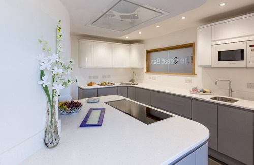 The Great Barn is fitted with state-of-the-art technology, a spacious lounge and a mezzanine reading area, a modern kitchen, and a dining terrace complete with awe-inspiring views. For the music lovers amongst you, the Great Barn is fitted with a Sonos invisible multi-room sound system complemented by KEF in-ceiling speakers.