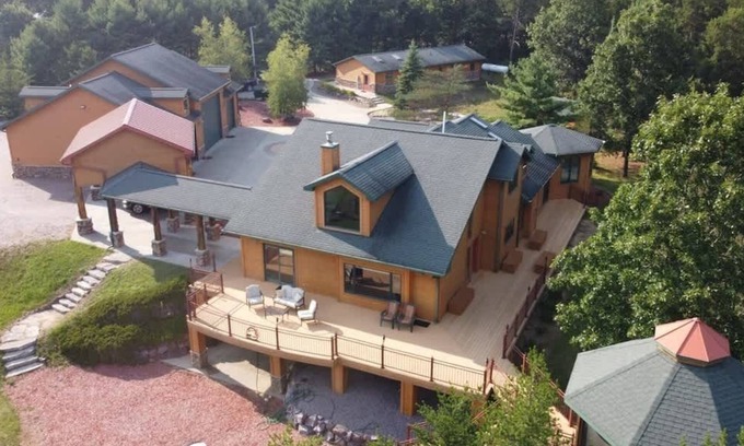 Welcome to The Great Escape - Private Resort by Patriot Properties, an exclusive private resort nestled on 10 breathtaking acres in Wisconsin Dells. This stunning property is perfect for couples looking to celebrate their special day in a serene and picturesque setting. With ample space for gatherings, both indoors and outdoors, you can create the wedding of your dreams while enjoying the comfort and privacy that this remarkable destination provides.