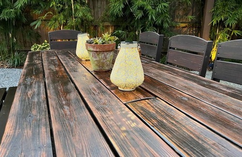Each guest may feel free to relax on the front porch and in the backyard. The backyard is accessed down the driveway and guests are welcome to enjoy the fire pit. There is also a laundry room which is located near the front door if needed.