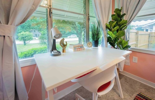 Welcome to Gatsby's Pink Flamingo Lounge for a memorable stay! Unwind on swings, play the organ, and enjoy a variety of games in this spacious 4-bedroom, 2-bath home that comfortably sleeps up to 10 guests. Located near charming downtown Surry, our unique space features a fully fenced backyard for your furry canine companions. Outdoor activities include cornhole, Tubelox, darts, sprinkler and a baby pool. Handicap accessible with a ramp, this is a one-of-a-kind retreat you won't want to miss!