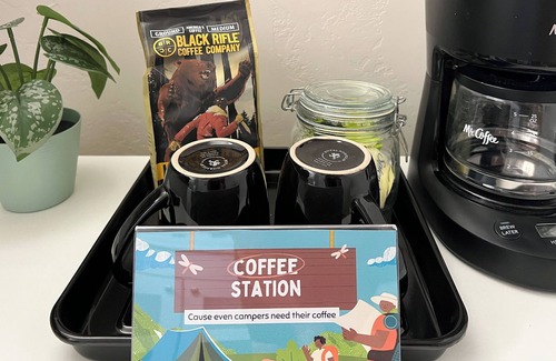 Tucked away on a peaceful street just a stone's throw from downtown Twin Falls, our cozy, lower-level unit is the perfect basecamp for your adventure. Enjoy a king bed, 2 twins, and a fun tent setup. The full bathroom and kitchenette (with toaster oven, hot plate, microwave, and more) make it a homey getaway. Completely private with no shared spaces—though you might hear the sounds of other campers or wildlife above. Small dogs are welcome! Perfect for a fun and comfortable, pet-friendly escape.