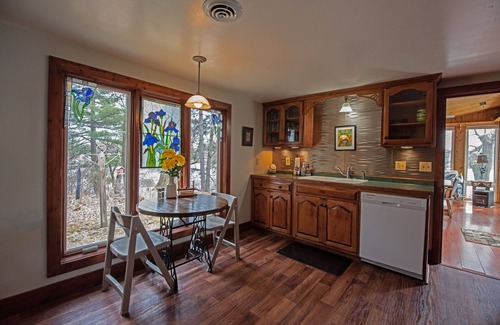 Create lifelong memories on Friendship Lake! This waterfront cabin sleeps 7 and is the definition of cozy. In the summer you'll love relaxing on the patio, roasting marshmallows over the fire pit, or cruising the lake in comfort in your very own kayak or pedal boat. During winter, a breathtaking sunset awaits in the sunroom after a day of ice fishing. No need to twist the paper to light a fire, all three fireplaces are electric.