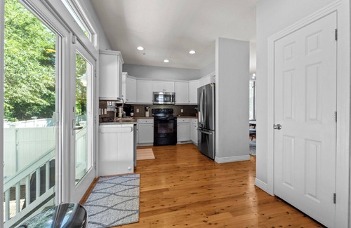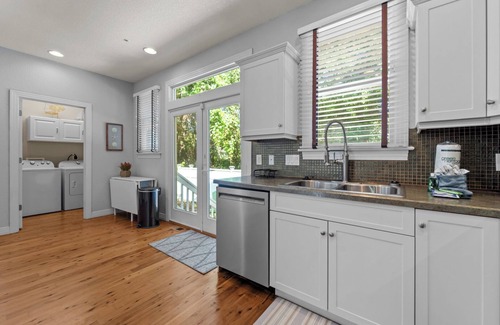 As soon as you step into The Green Crab's main living area, you'll instantly feel at ease and right at home. Relax with your loved ones for a cozy family movie night or whip up a delicious meal in the well-equipped kitchen and enjoy it together around the dining table. This level also features a convenient half bath and a washer and dryer for guest use.