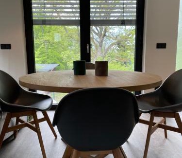 Offering a garden, The Green One Edersee offers accommodations in Bringhausen. With lake views, this accommodation provides a balcony. There's a picnic area and guests have access to free Wifi, free private parking, and an electric vehicle charging station. Providing a terrace and mountain views, the vacation home includes 2 bedrooms, a living room, satellite flat-screen TV, an equipped kitchen, and 2 bathrooms with a walk-in shower and a bath. The parquet floors, fireplace, and peaceful vibe add to the ambience of the room. The property has an outdoor dining area. Guests can make the most of the warm weather with the property's barbecue facilities. Kassel-Calden Airport is 34 miles away.