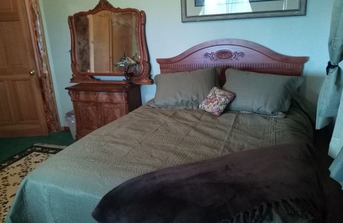Cozy elegant room part of the Hungry Moose Bed and Breakfast on top the 17 acre hill accommodates two people. Five minutes from Kasilof River, Johnson Lake and Tustumena Lake boat launch. Hearty hot breakfast served every morning by Becky, the hostess. The hostess stays in the house. Becky loves to chat and give you tips about the area and neat places to visit. Shared restroom next to room is available with full bath and shower.