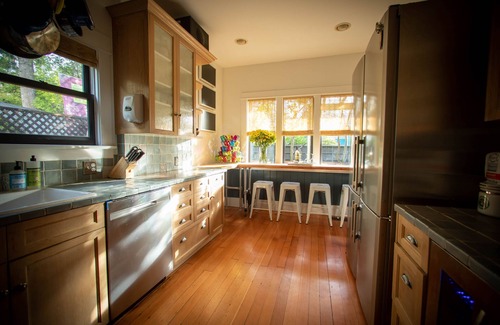 renovated craftsman triplex | entire main floor unit | fits six | centrally located | it could also be combined with the second-floor unit the greenlake suites | kitchen | lovely courtyard bistro & patios | free parking | super-fast wifi 1-gig | one of two listings on VRBO