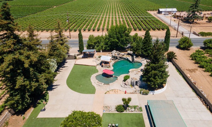 This ranch style home has 5 bedrooms and 3 bathrooms. There is a dedicated bunkroom and enough room in the house to sleep 20. Large kitchen with massive island, stainless steel appliances, and sound system. An amazing pool and grotto unlike any other with a pool bar. Basketball court, cornhole, fireplace, outdoor sound, RV parking & dedicated parking on property. This home is surrounded by beautiful vineyards. Will be ideal for large family gatherings.