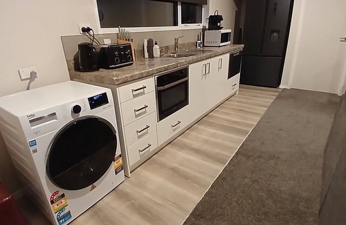 Set up with a kitchen featuring a F&P dishdraw dishwasher, French door fridge/freezer and Nespresso coffee machine plus a new Beko all in one front load washer/ dryer.