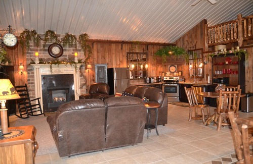 Cozy rustic cabin nestled in the Allegheny foothills with beautiful mountain views of Shawnee Lake. After you arrive, settle into the luxurious leather furniture in front of the gas fireplace with your favorite beverage. Outdoors, enjoy the sunrise or morning mists on one of the rockers on the 75-foot wrap around porch, or build memories with family and friends in the evenings around the fire ring. On crisp mornings, you will definitely appreciate the radiant floor heating. Although the cabin has a full kitchen, highly rated restaurants such as Jean Bonnet Tavern, 10/09 Kitchen, and LIFeSTYLE are just down the road. Located 8.5 miles from historic Bedford, fifteen miles from the Flight 93 Memorial, and within minutes of several ski resorts. We are not at our computer a lot so please call our home for questions or when arriving. 814-733-0119 Rate of $159 is based on double occupancy and 2 night minimum. Additional guests can be accommodated (up to 8 total) for $10 per guest per night. Located at 3569 Lincoln Highway, Schellsburg PA 15559