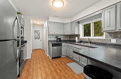 Your stay at The Guest House is enhanced by a range of modern amenities designed for comfort and convenience. The property features four well-appointed bedrooms, including a luxurious King suite and two Queen rooms, with additional sleeping options available. You'll find spacious living areas, a fully equipped kitchen ideal for meal prep, and a game room stocked with entertainment options like foosball, air hockey, and darts. Step outside onto the back deck to take in stunning green views or gather around the firepit with friends and family—perfect for creating lasting memories amidst the natural beauty surrounding you.
