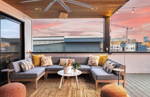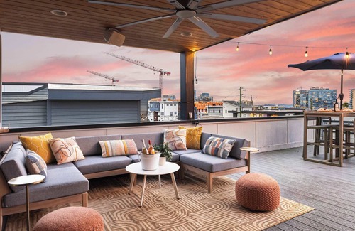 - Chic Music Row Condo Rooftop Deck with City View Gym Office and More