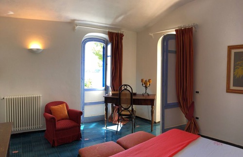 Comfortable suite located on the first floor of the main body of the villa, consisting of two comfortable double bedrooms, both served by a single bathroom with shower. The main room has a small private terrace, while the other opens directly onto the splendid terrace of the villa, shared with the other suites, from which you can go directly to the garden.