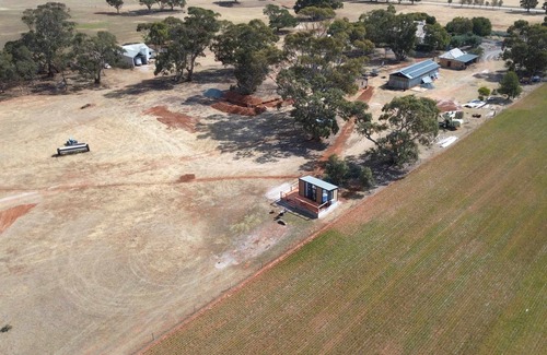 The Gums Cottage by Tiny Away is a charming farm stay in Hallet, South Australian. Just a 30-minute drive from Jamestown, our tiny house is situated in a grassy paddock, surrounded by gum trees with abundant wildlife and farm animals.
