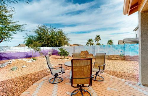 The Half Moon Sanctuary is located in San Tan Valley, just 28 miles from Golfland Sunsplash and 28 miles from Arizona Event Center. This vacation home provides air-conditioned accommodations with a patio. The vacation home also offers facilities for disabled guests. The vacation home features 3 bedrooms, a fully equipped kitchen with a dishwasher and an oven, a washing machine, and 2 bathrooms with a hair dryer. Towels and bed linen are provided in the vacation home. The property has an outdoor dining area. Guests can enjoy a meal at the on-site restaurant. For guests with children, The Half Moon Sanctuary offers a children's playground. Guests can also warm up near the outdoor fireplace after a day of cycling. Mesa Arts Center is 28 miles from the accommodation. Phoenix-Mesa Gateway Airport is 9.3 miles away.