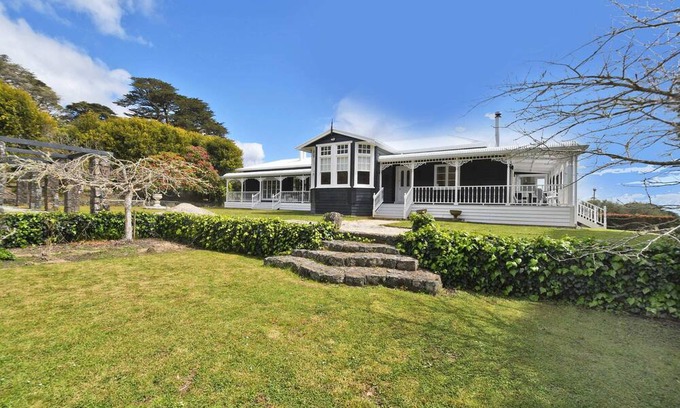 Welcome to The Hampton on Matakana Coast | Breathtaking Views, an idyllic escape perched 900 feet above sea level, offering panoramic vistas of Pakiri Beach. This historic villa, originally crafted as a wedding gift in 1915, provides a romantic and timeless atmosphere that makes it an exceptional choice for your special day. With its lush pastures and charming gazebo, this coastal haven is not just a retreat but a picturesque setting where love stories unfold amidst breathtaking scenery.