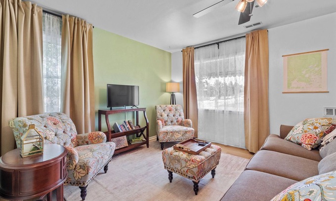 Welcome to the cute and cozy Harney Cottage, centrally located just 5 blocks from the University of Wyoming, 10 blocks from War Memorial Stadium (walk to football games!), and 1.5 miles from the heart of downtown Laramie. This 1930s home has been lovingly updated and is ready to host you with 2 bedrooms, 3 beds, and 1 bathroom, plus a full kitchen, barbecue grill, & outdoor dining area. Work remotely with fast fiber internet and a dedicated workspace. Free off-street and on-street parking!
