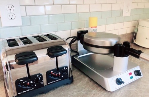 When not out and about enjoying all Waco has to offer, relax in front of a 50-inch smart HDTV w/Roku for all your favorite streaming, play a board game, or have fun with the Wii gaming system. The kitchen is well-equipped, including a Wolfgang Puck indoor grill, crockpot, and even one of those hotel waffle makers! The Haven is stocked with waffle mix, butter, and syrup to start your day off right! You'll also be greeted with a variety of snacks upon arrival and a special surprise or two. The primary bedroom is equipped with a high quality mattress, a variety of pillow options, and a soundscapes sleep therapy alarm clock to help you get a restful night’s sleep.