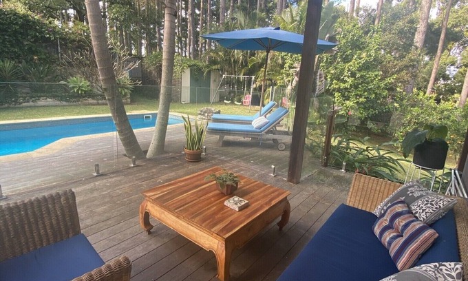 Our 'Haven' is situated on 2 tropical acres ideally located in the lush Byron Bay hinterland of Newrybar and only 1.5 km to the reknowned Harvest Restaurant and Deli and The Newrybar Merchants. A short scenic drive will take you to the beautiful bathing and surfing beaches of Suffolk Park, Byron Bay and Lennox Head. The villages of Bangalow, Mullumbimby, Lennox Heads, Brunswick Heads and Byron Bay will provide hours of pleasant strolling, shopping and a bevy of extraordinary dining choices to create the perfect getaway setting.