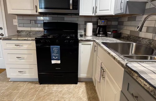 This charming 1Bd is the perfect combination of comfort, convenience, and historical charm. With beautifully furnished living areas, including ample seating and a 50" TV with streaming options like Netflix, YouTube, and Apple TV, you can relax and enjoy your favorite shows.