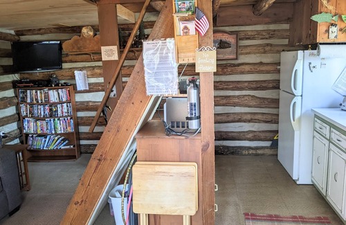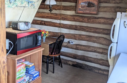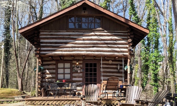 The Hawk Nest Log Cabin was hand-built from cedar trees located on the property. The cabin is small, but cozy and comfortable. It's perfect for 2 or 3 guests, but it can accommodate up to 4 people. Both bedrooms and the bathroom are located upstairs. If you have a problem with stairs, the cabin might not be right for you, as the stairs are steep. (Ladder-style stairs). "The Hawk Nest" cabin is located right on Tims Ford Lake in middle Tennessee, just outside the town of Winchester. It sits at the edge of the lake, surrounded by 4 wooded acres, with its own dock in a private and quiet residential area. Be sure to bring your own firewood (or feel free to pick up any sticks you may find in the yard) so you can enjoy roasting hot dogs or marshmallows by the firepit. Sit back and relax in the hammock or either of two outdoor swings on the property. You'll find a picnic table and both a gas & charcoal grill for your convenience. There is plenty of shade and it's very peaceful and relaxing here. There are games and rainy-day activities for children, including a child's swing set and sandbox. Basic cable TV is available, as well as Wifi. Smoking is not allowed inside the cabin, but your pets are welcome. Tims Ford is a great lake for fishing, skiing, or boating. There are lots of antique shops and other attractions nearby as well as mountains nearby for hiking. It's located about 20 minutes from Tims Ford State Park and the Jack Nicklaus designed "Bear Trace Golf Course". It is 25 miles to Jack Daniels in Lynchburg; 15 miles to Falls Mill with the largest working water wheel in the United States; 17 miles to Sewanee and the beautiful University of the South. The cabin is located approximately 60 miles northwest of Chattanooga, 90 miles southeast of Nashville, and 50 miles northeast of Huntsville AL and the U.S. Space & Rocket Center.