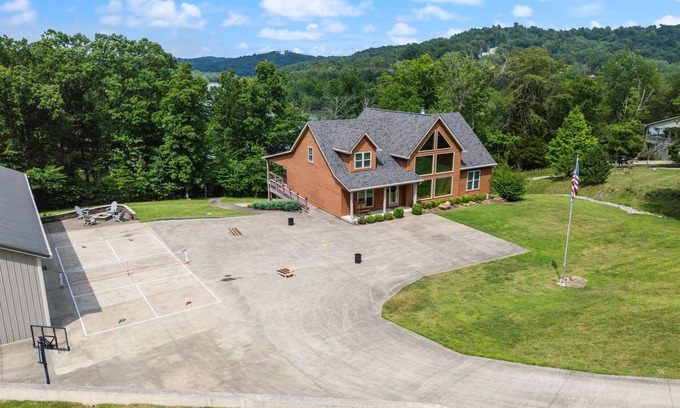 This lakefront 5,000SF property sits on 2 acres and has 7 bedrooms and 5 full baths, with a total of 15 beds. 5 Kings, 1 Queen, and 9 Single XL's . The property was crafted with entertainment in mind and went through significant upgrades in 2024. On premise is a pickleball court, basketball goal, ping pong table, pool table, darts, cornhole, cam jam, slip and slide, 2 fire pits, and multiple indoor and outdoor entertainment areas. The property is on the water and the boat ramp is conveniently located on the same street. This the perfect choice for both adult and family get aways.