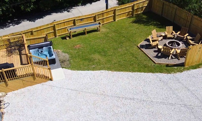 - Outdoor Bliss: The private backyard boasts a spacious area with a hot tub, fire pit, grill, and outdoor seating, creating a picturesque backdrop for evening gatherings under the stars.