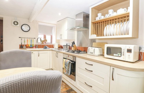 Amenities: Gas central heating with woodburning stove. Electric oven and gas hob, microwave, fridge/freezer, washing machine and tumble dryer in utility, dishwasher, TV with Freeview, DVD, Blu-ray, CD/radio, PlayStation 2, WiFi, selection of books, games and DVDs. Fuel, power and starter pack for stove inc. in rent. Bed linen and towels inc. in rent. Cot and highchair on request. Off road parking for 2 cars. Private front garden. Shared use of lawned garden and paddock with furniture and BBQ. Shared use of hot tub (private use can be arranged with owner) with external WC. Four well-behaved pets welcome. Sorry, no smoking. Shop 2 miles, pub 1.5 miles.